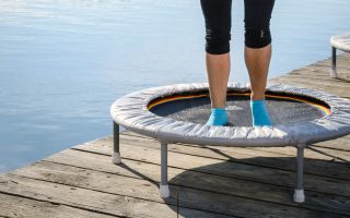 Stell Dich auf Dein Trampolin - in die Mitte. Und nun stellst Du die Ferse des einen Fußes an die große Zehe des anderen und drehst dann nach hinten auf. So stehst Du genau richtig! Versuche Dich im Alltag genauso wie im Training immer daran zu erinnern und den hüftschmalen Stand einzubauen. Du wirst vom Ergebnis überrascht sein!