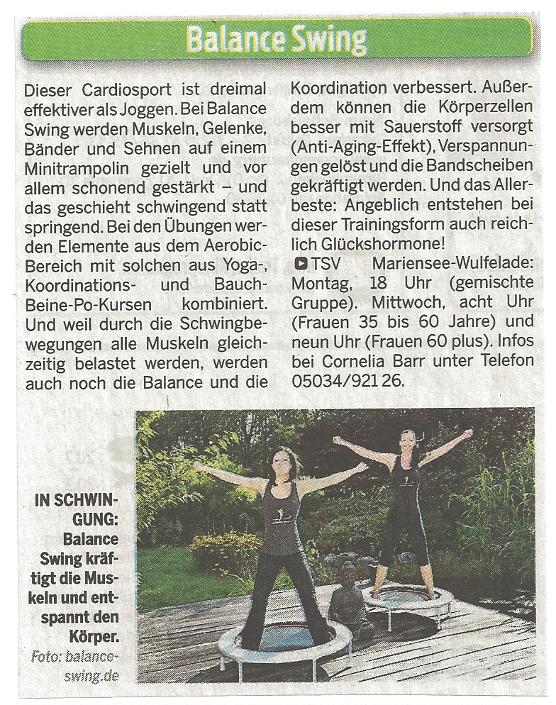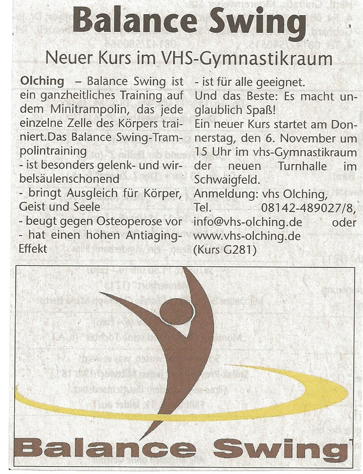 Balance SwingTM - neuer Kurs im VHS Gymnastikraum Olching